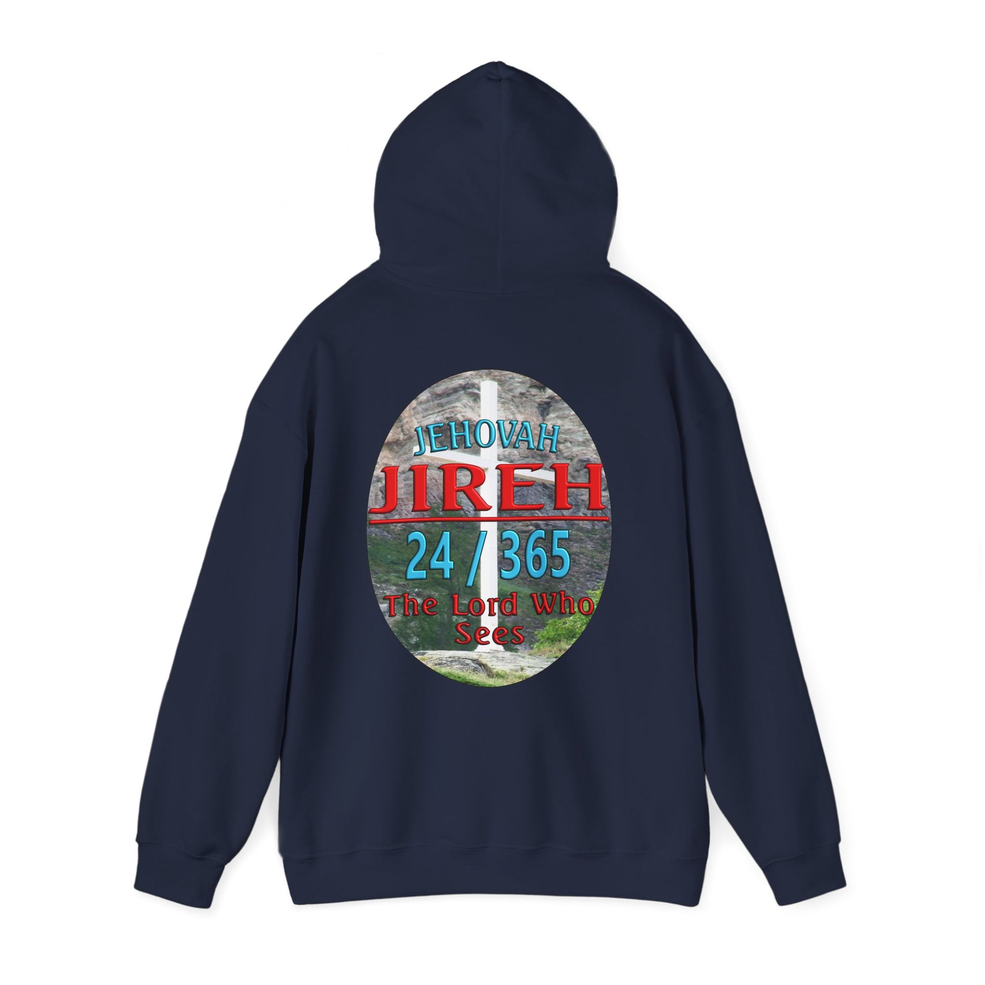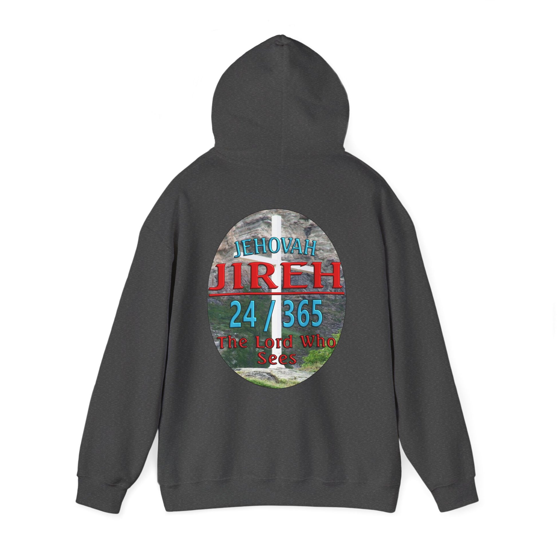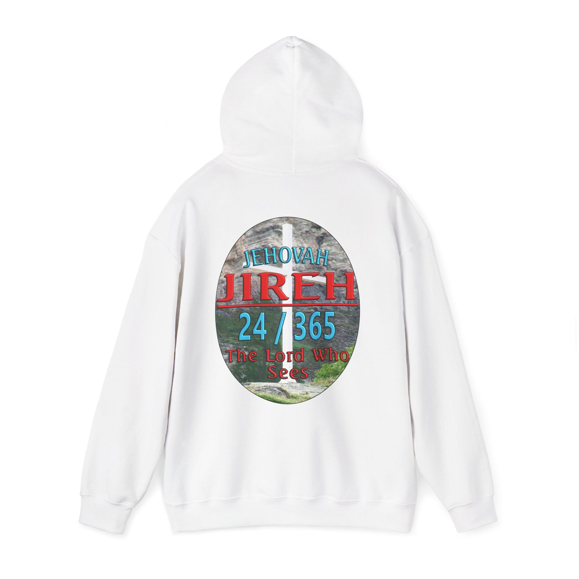 This Hoodie reflects the combination of Jehovah with the word "Jireh". “Jireh” means “sees”. It means the eternal God is watching and noticing all that is going on. Nothing ever escapes His notice or attention. It also means that Jehovah is forever watching over us. He is continually watching and preparing His provision for what we face 24-365. There is no point during the day or throughout the year when He is not watching and providing for us.