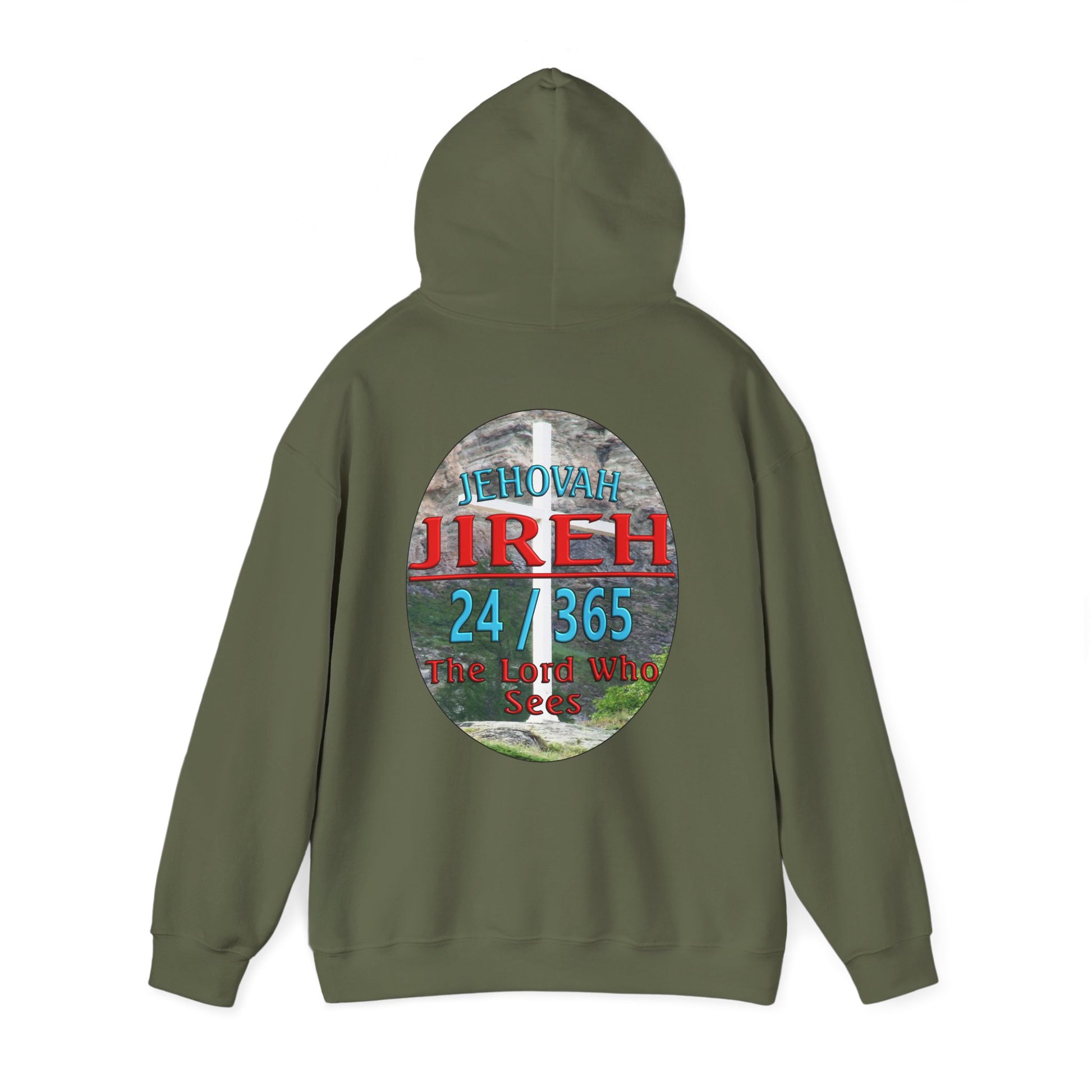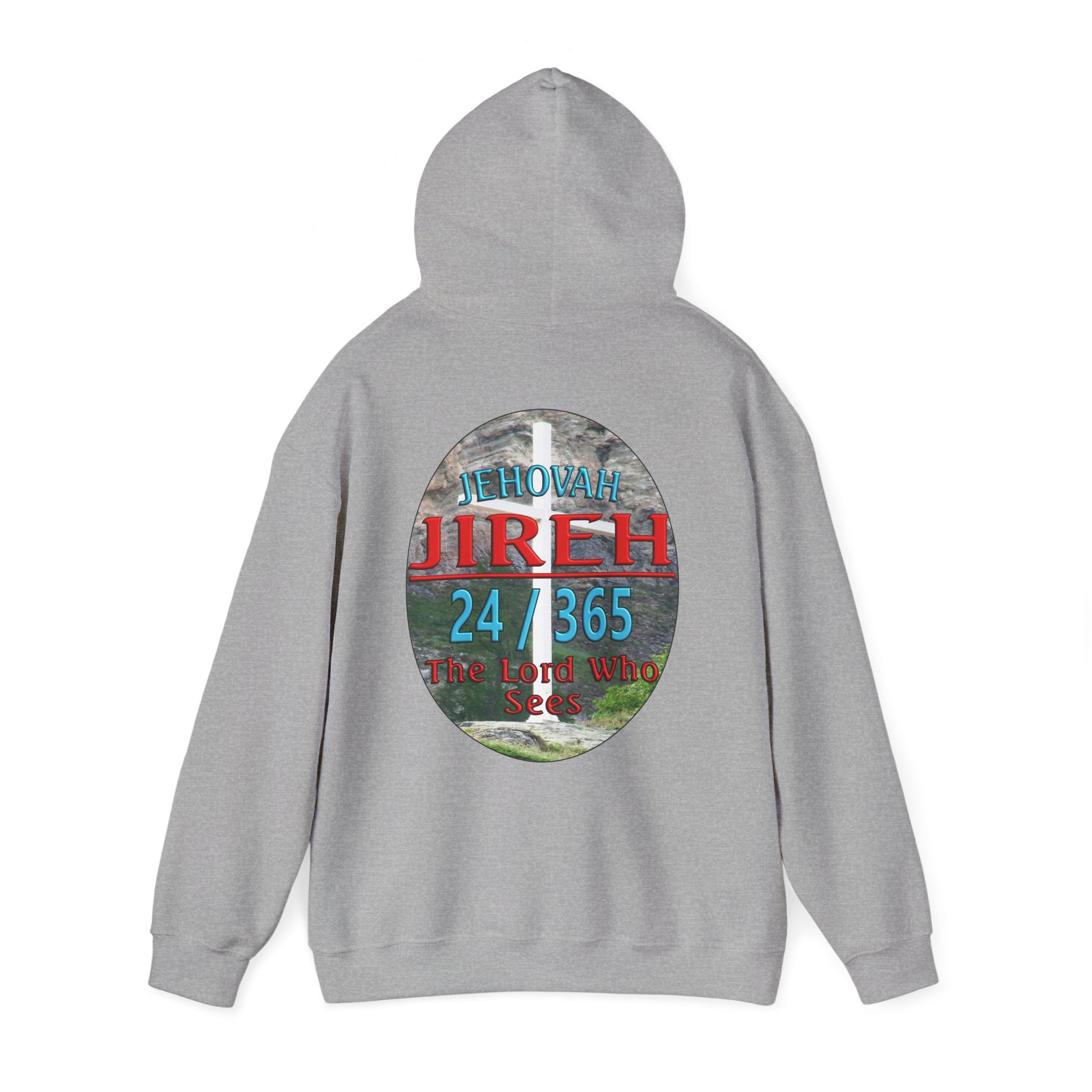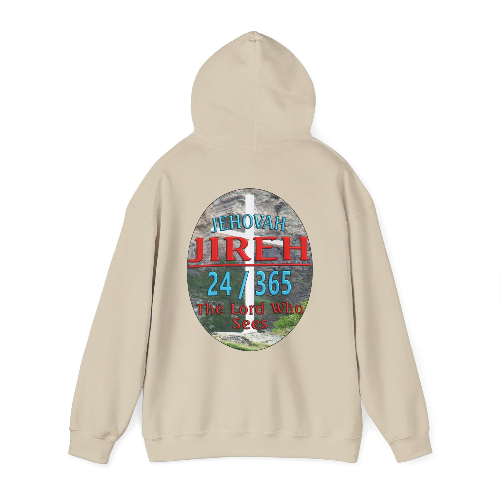 This Hoodie reflects the combination of Jehovah with the word "Jireh". “Jireh” means “sees”. It means the eternal God is watching and noticing all that is going on. Nothing ever escapes His notice or attention. It also means that Jehovah is forever watching over us. He is continually watching and preparing His provision for what we face 24-365. There is no point during the day or throughout the year when He is not watching and providing for us.