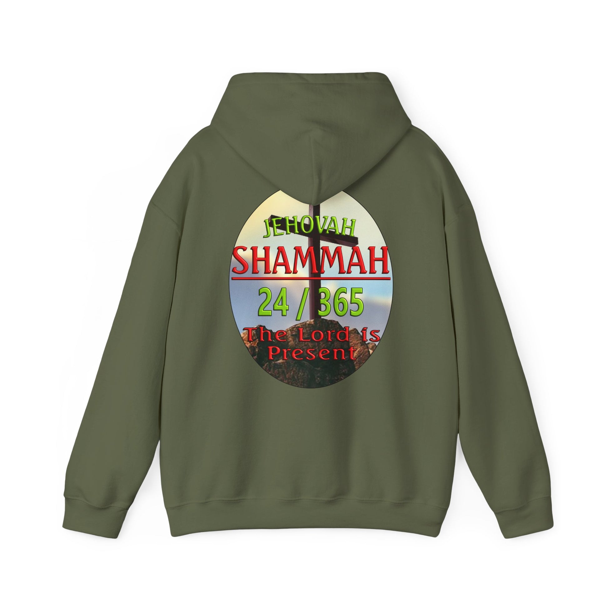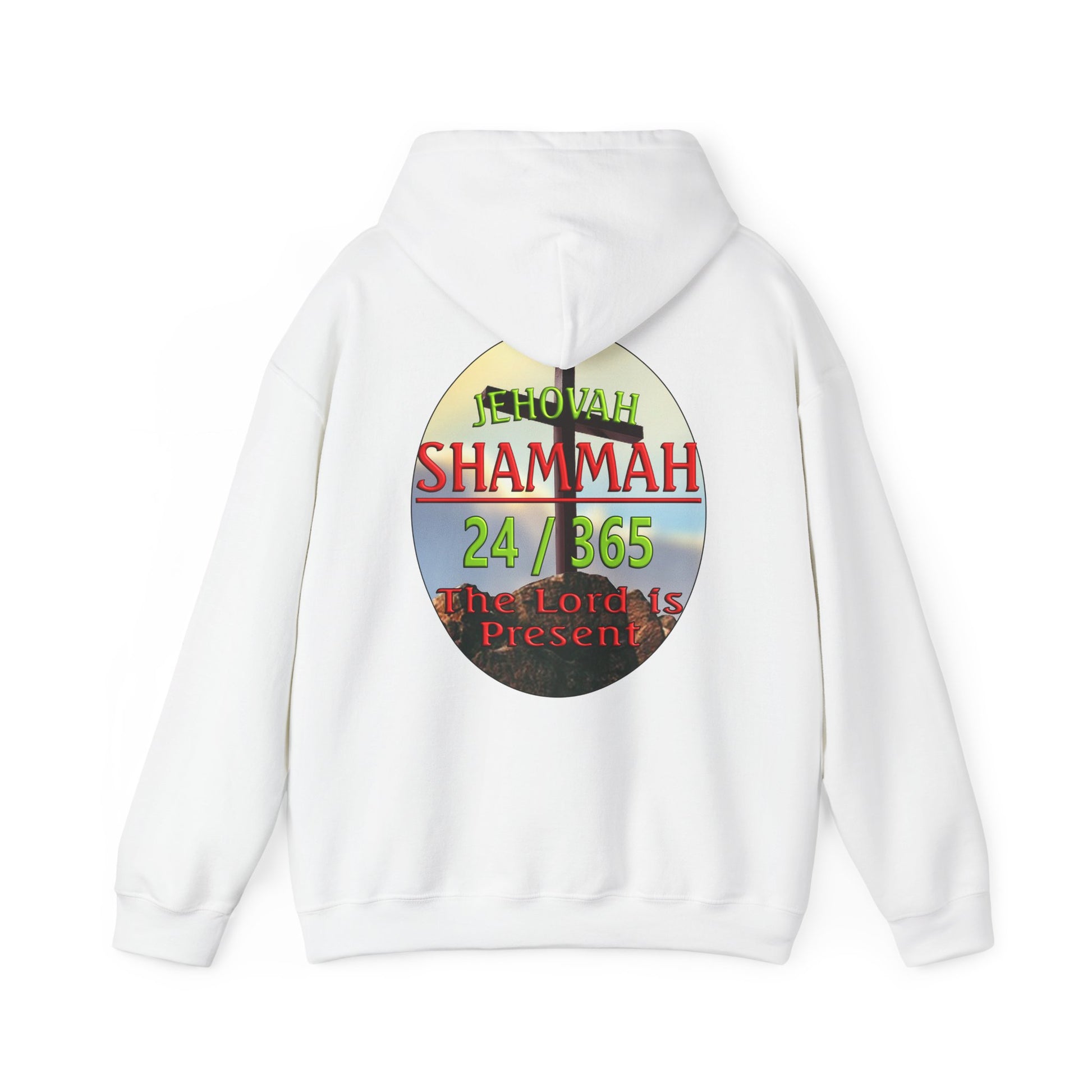 This Hoodie reflects the combination of Jehovah with the word "Shammah". Shammah means He is there, or He is present. When you add Shammah to a name like Jehovah, it means the eternal God is present. It also means that Jehovah is eternally present with us. He is present 24-365. There is no point during the day or throughout the year when He is not here with us. No matter what circumstance we find ourselves in He is there. Both good and bad situations we face will always be faced with Him there. This is the promise He has made to all those who belong to Him.