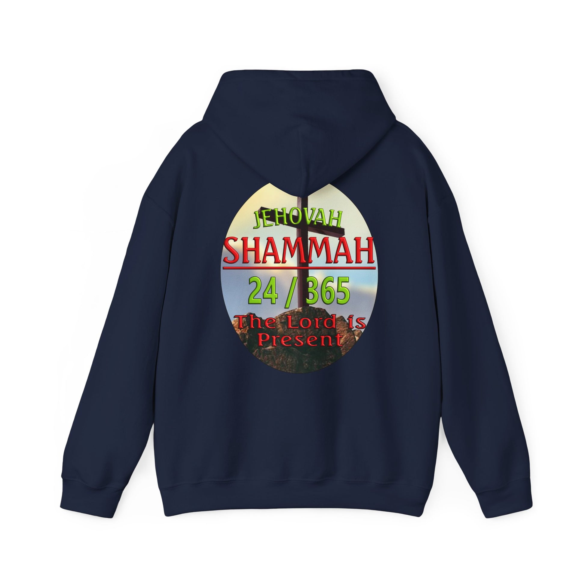 This Hoodie reflects the combination of Jehovah with the word "Shammah". Shammah means He is there, or He is present. When you add Shammah to a name like Jehovah, it means the eternal God is present. It also means that Jehovah is eternally present with us. He is present 24-365. There is no point during the day or throughout the year when He is not here with us. No matter what circumstance we find ourselves in He is there. Both good and bad situations we face will always be faced with Him there. This is the promise He has made to all those who belong to Him.