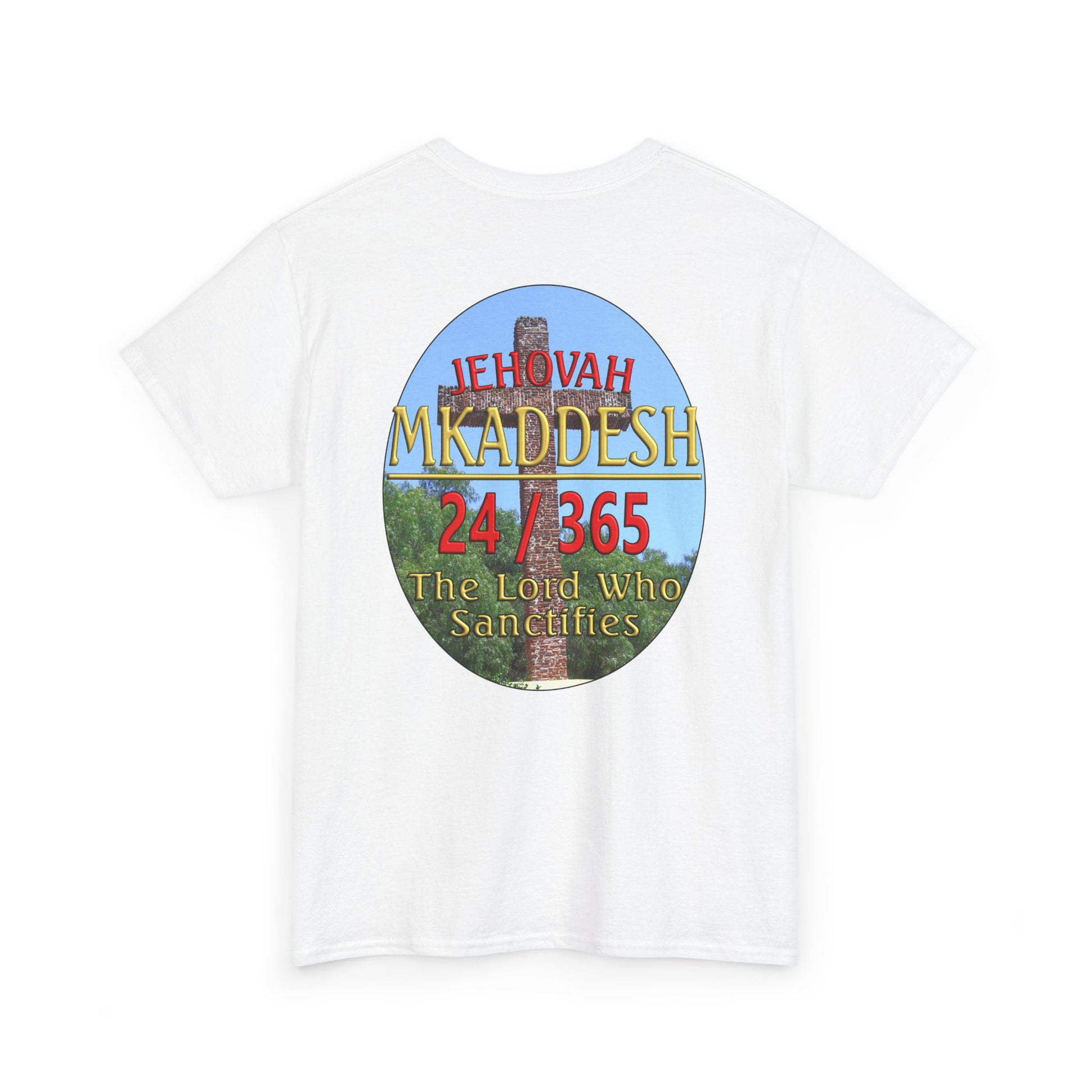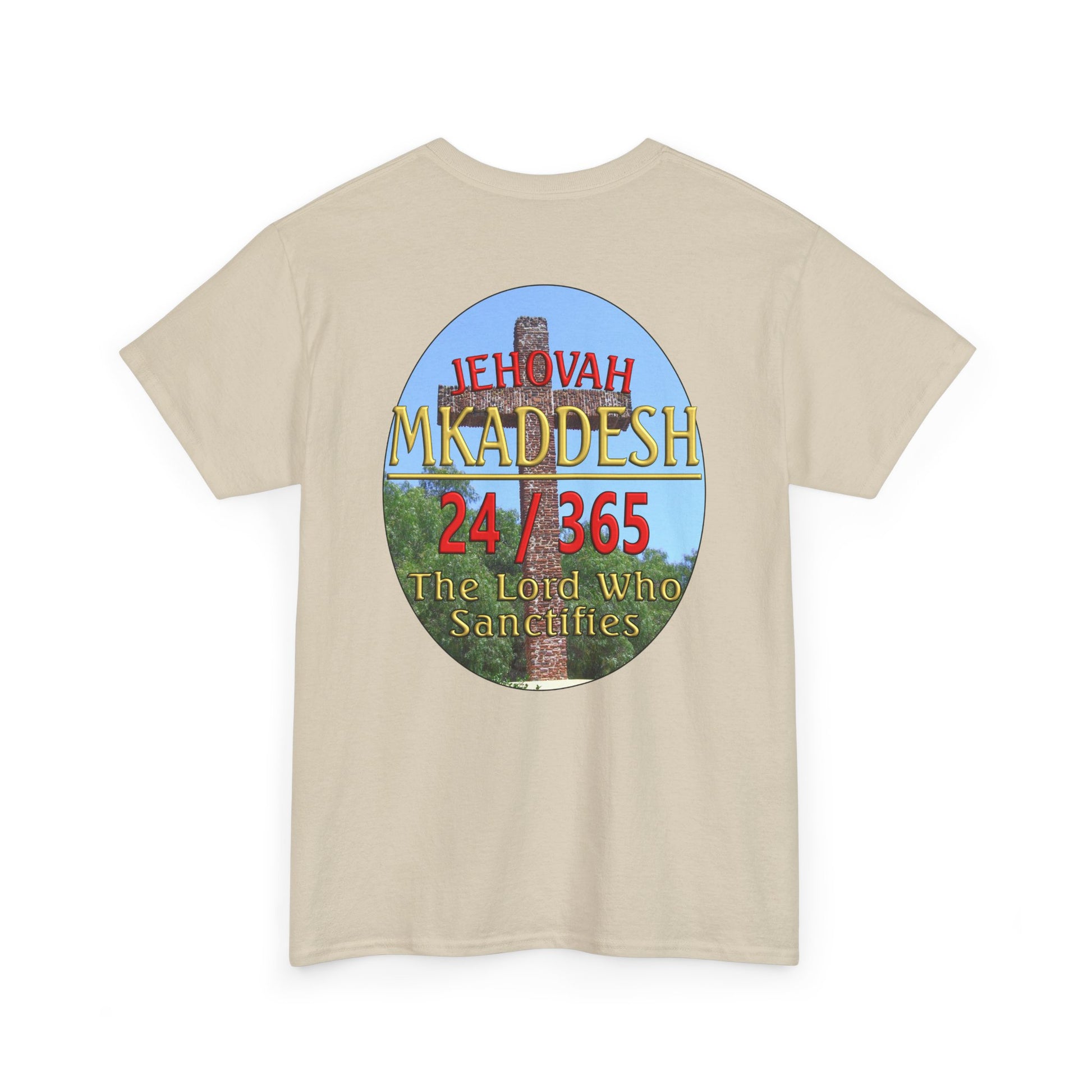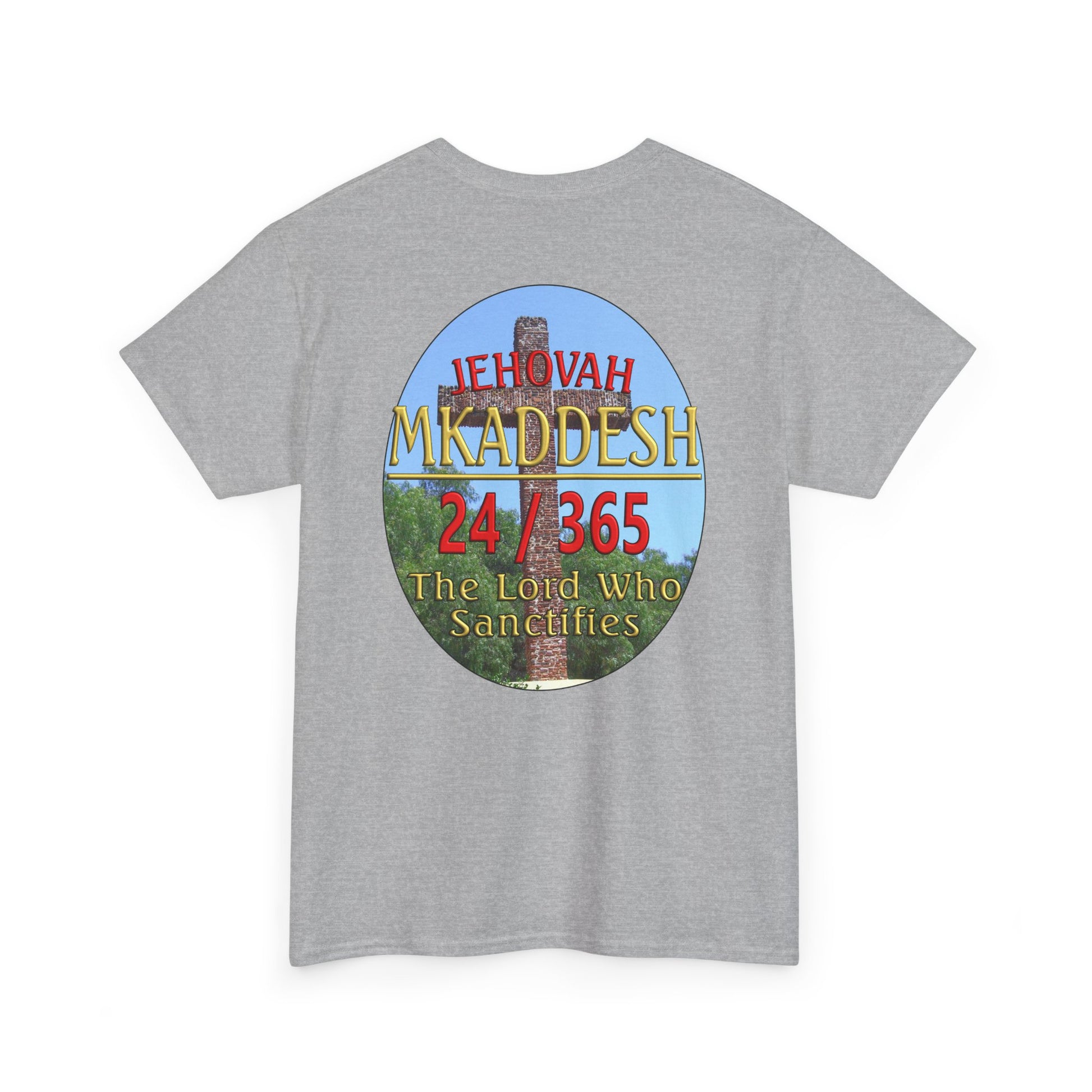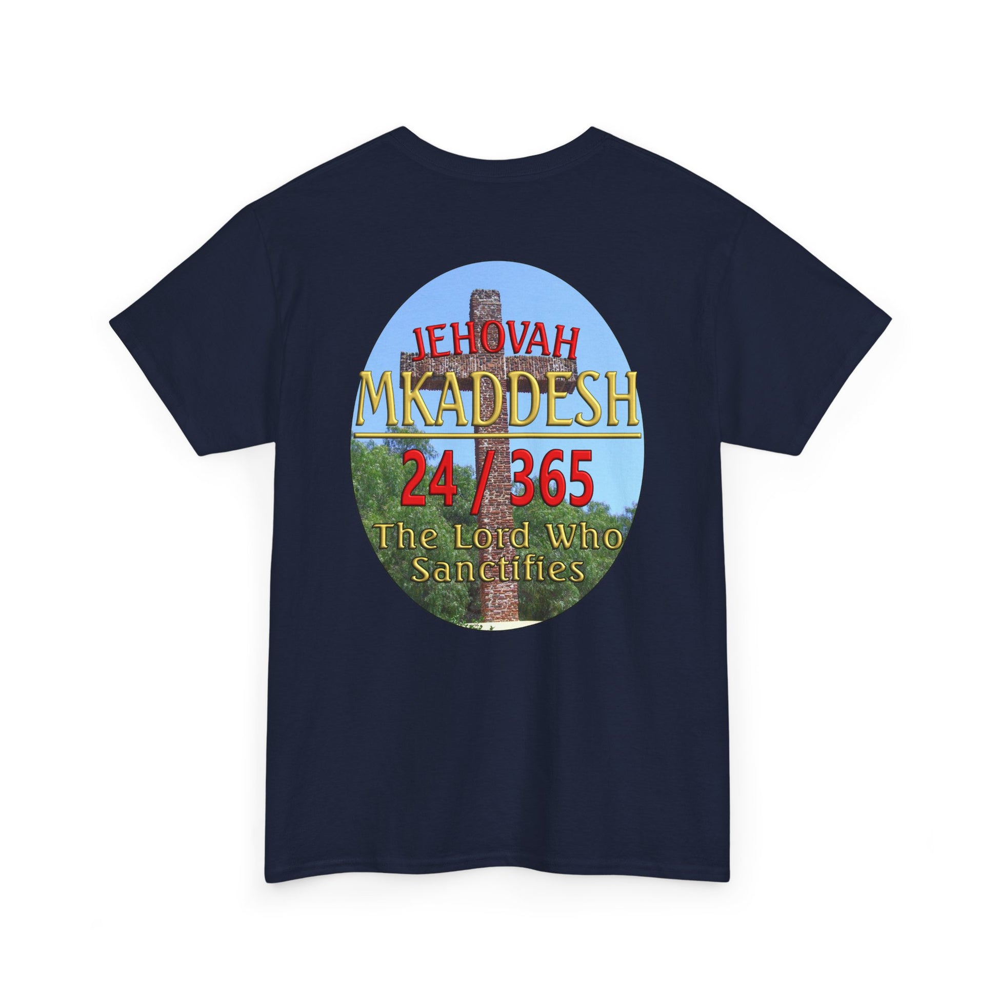 This Tee shirt reflects the combination of Jehovah with the word “M’Kaddesh". ”M’Kaddesh” means to sanctify, When M’Kaddesh is added to a name like Jehovah, it means the eternal God is the one who sanctifies. It also means that Jehovah eternally sanctifies us.