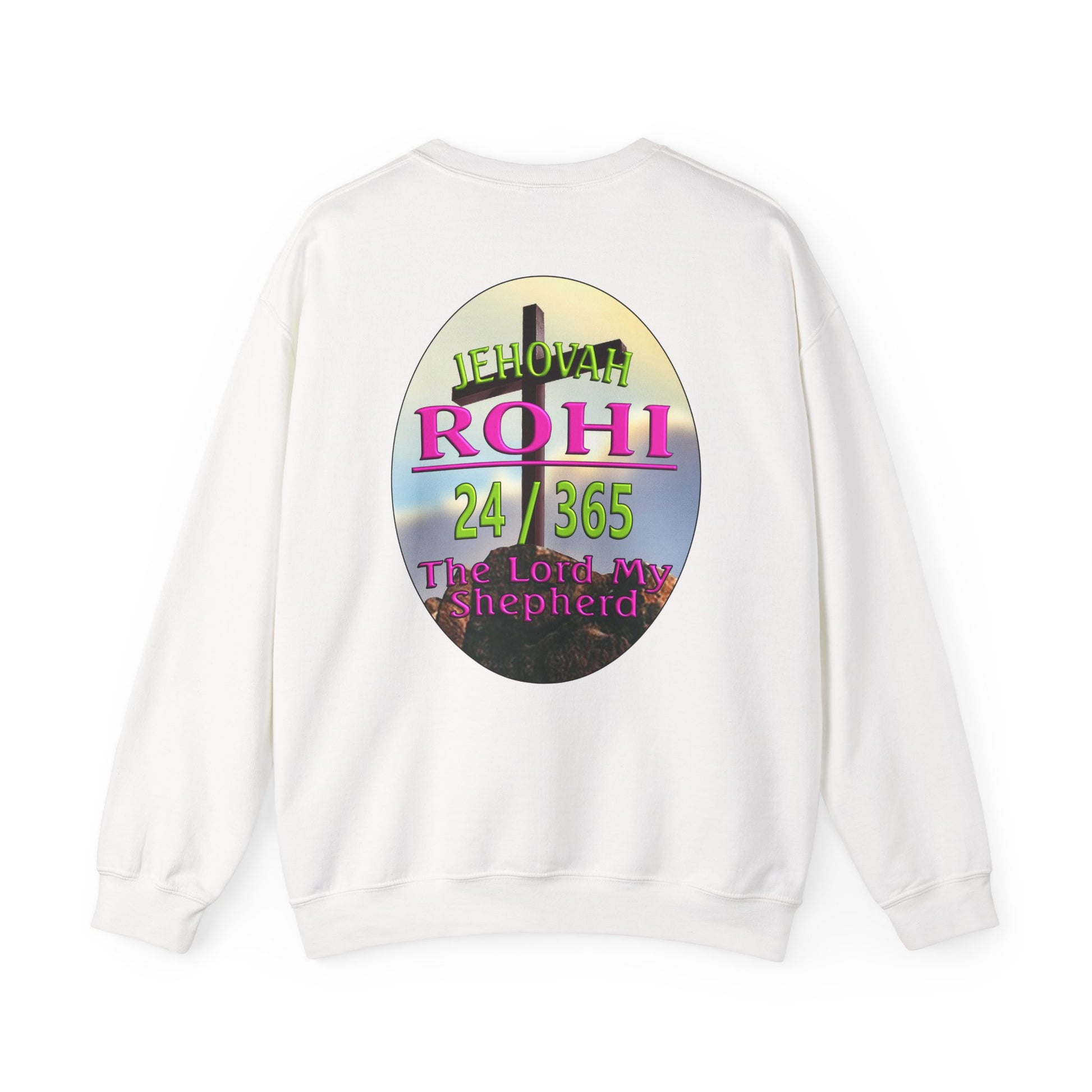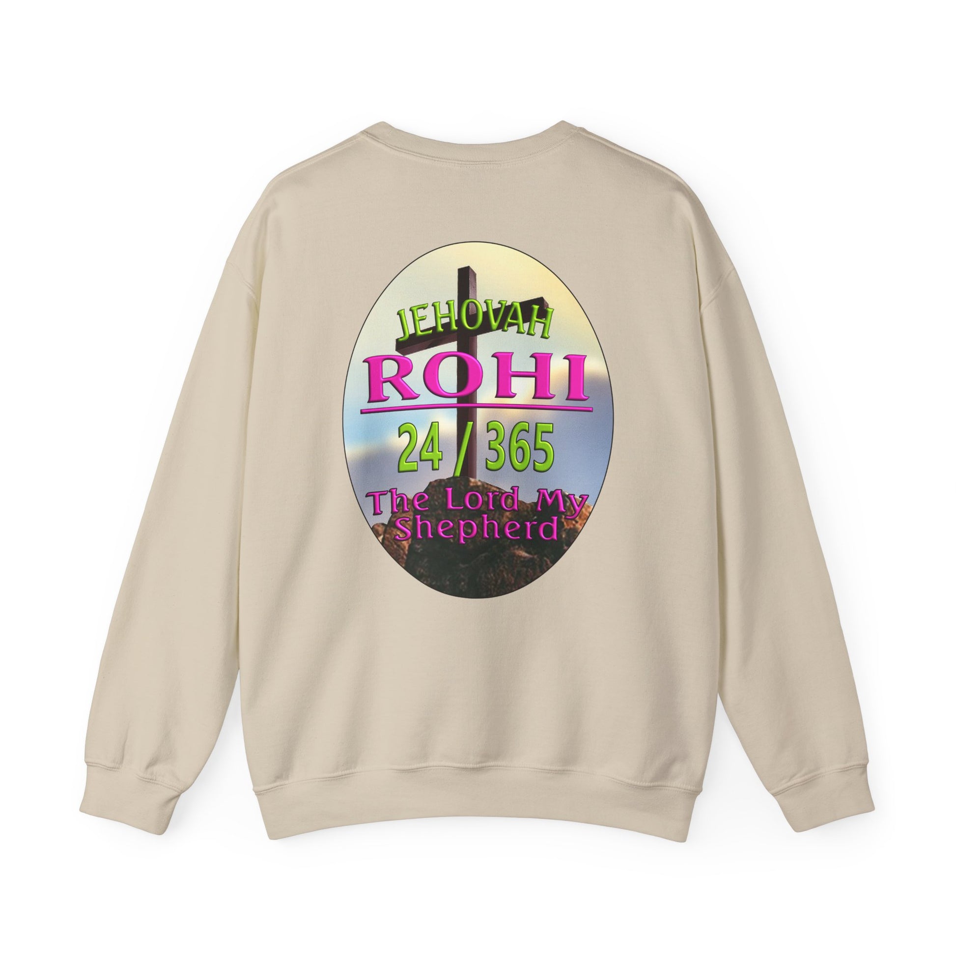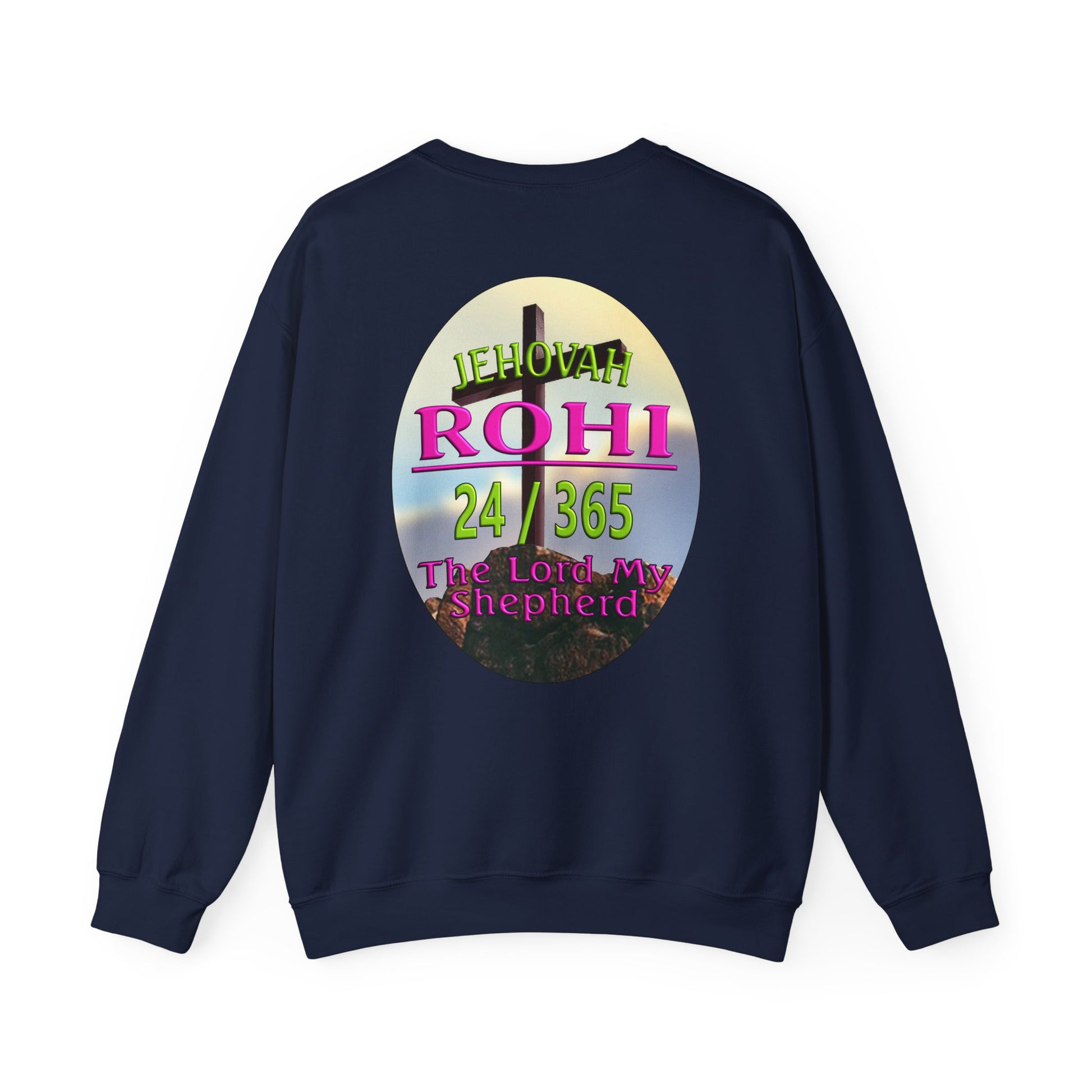 This Sweat shirt reflects the combination of Jehovah with the word "Rohi". “Rohi” means shepherd, When Rohi is added to a name like Jehovah, it means the eternal God is our shepherd. It also means that Jehovah is eternally our shepherd. The role of a shepherd was to care for the sheep and as sheep we need a lot of caring.