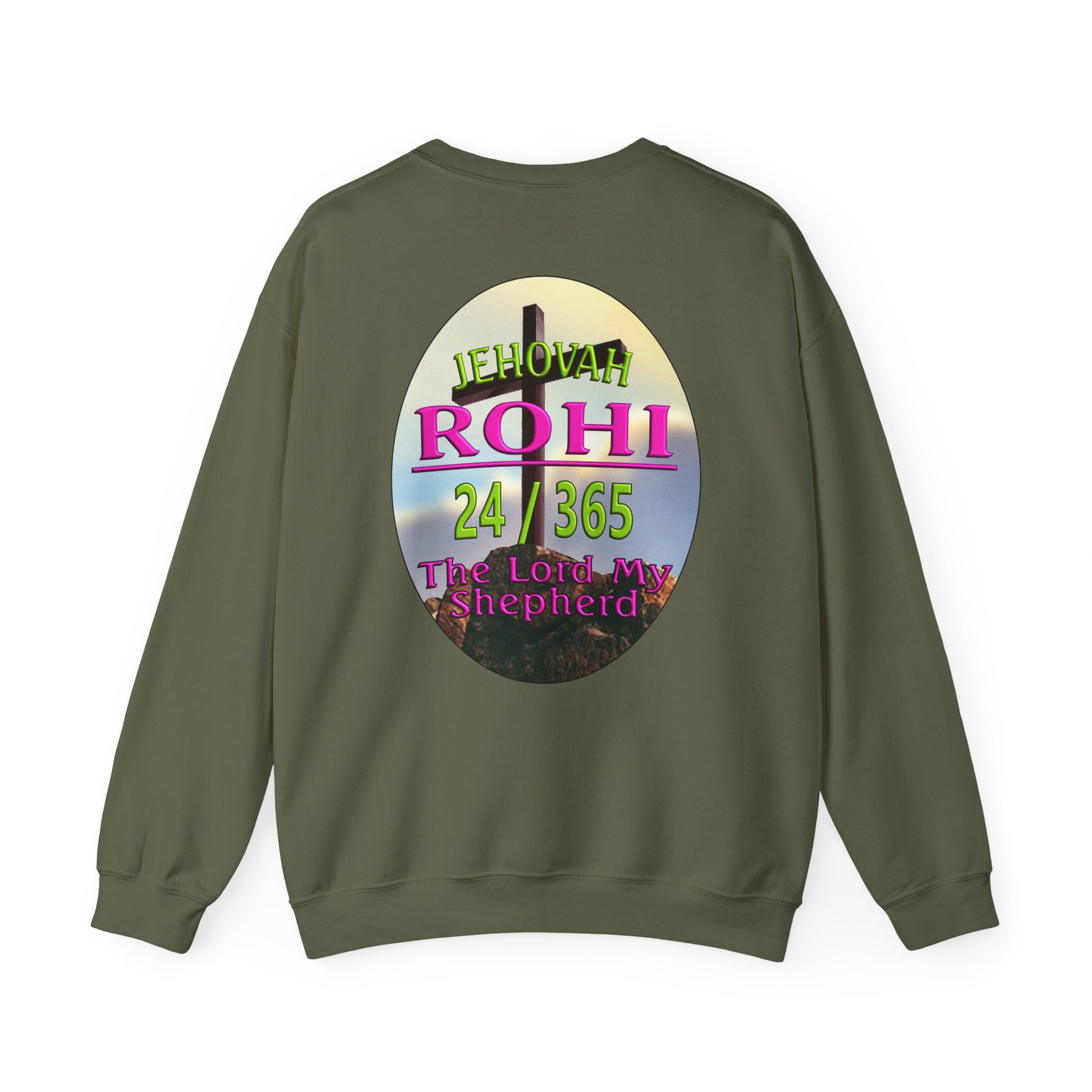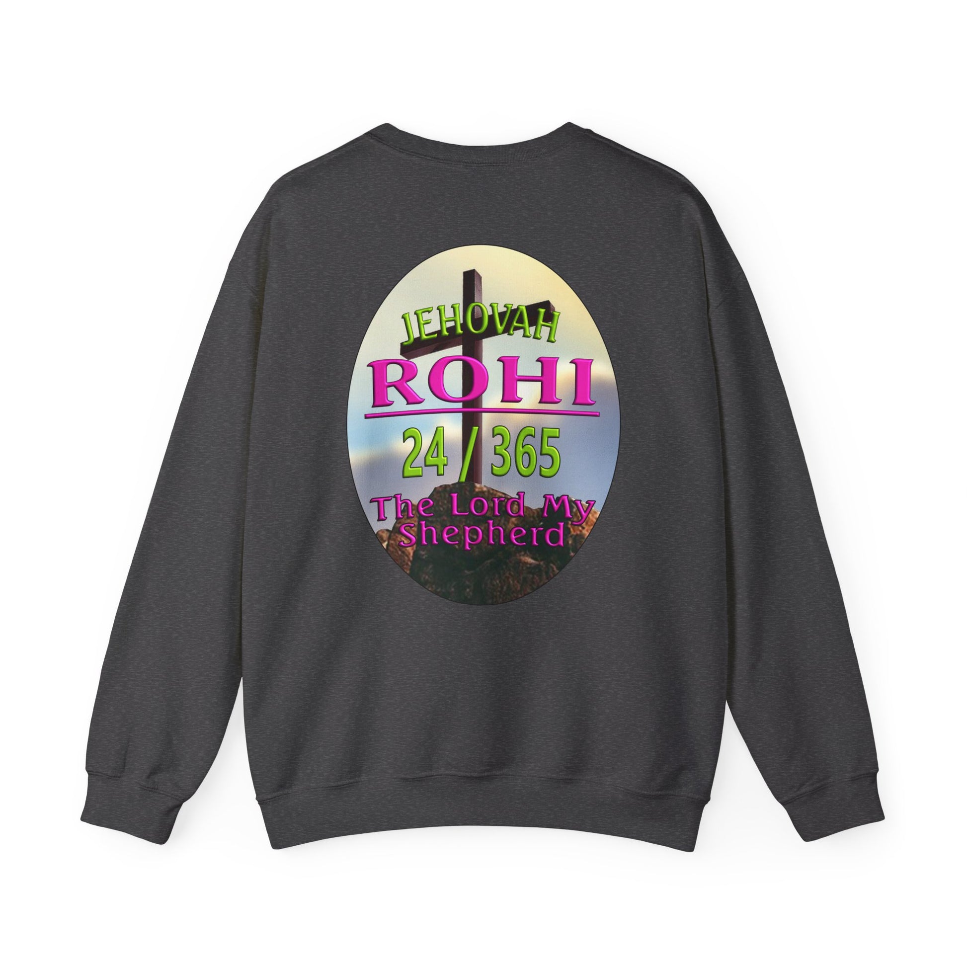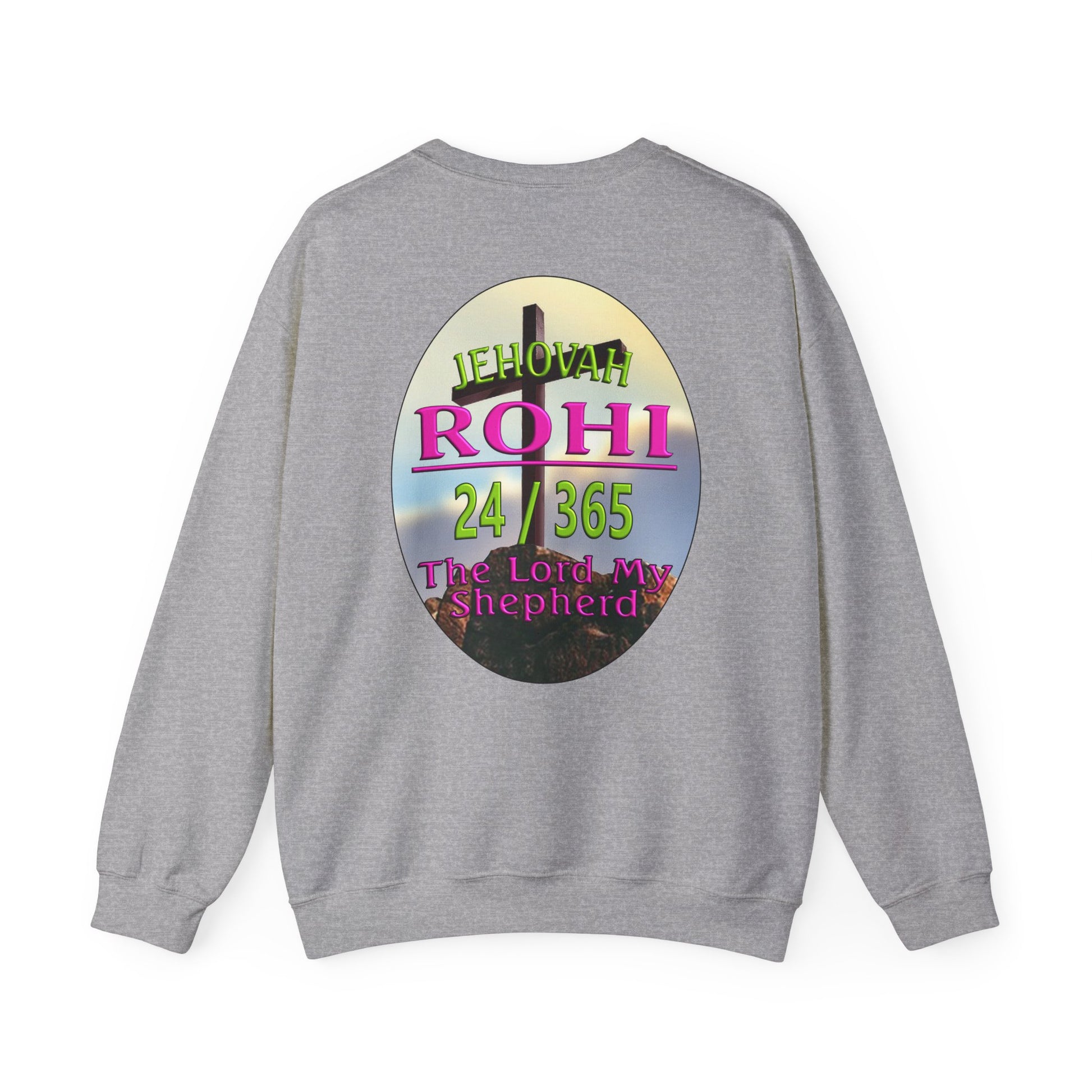 This Sweat shirt reflects the combination of Jehovah with the word "Rohi". “Rohi” means shepherd, When Rohi is added to a name like Jehovah, it means the eternal God is our shepherd. It also means that Jehovah is eternally our shepherd. The role of a shepherd was to care for the sheep and as sheep we need a lot of caring.