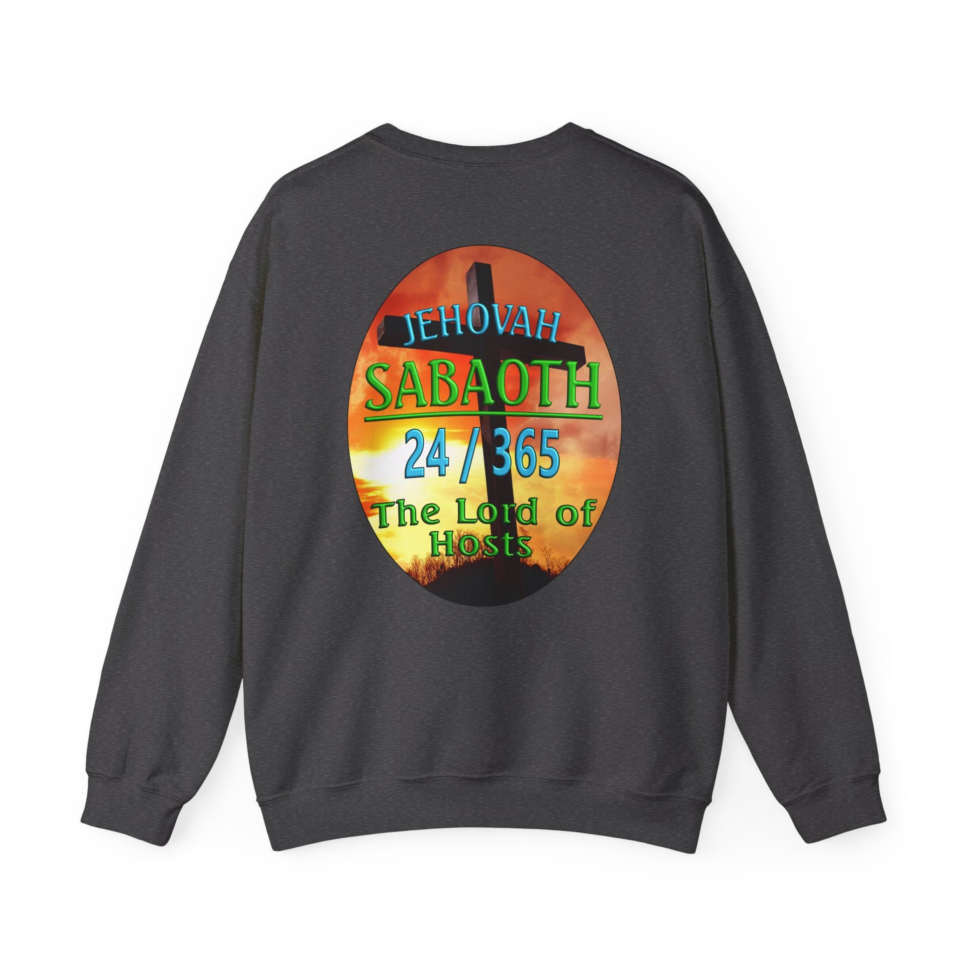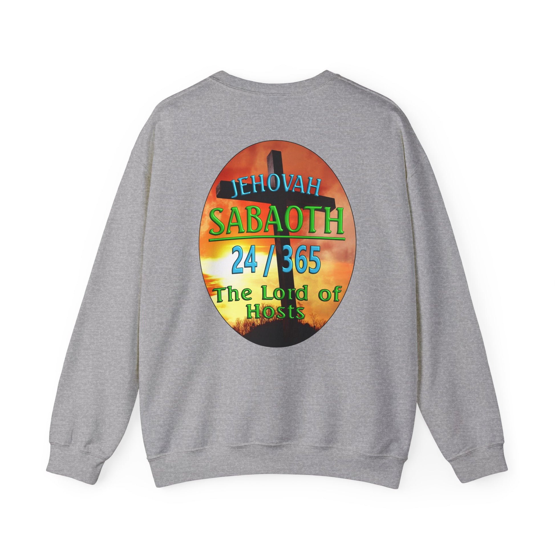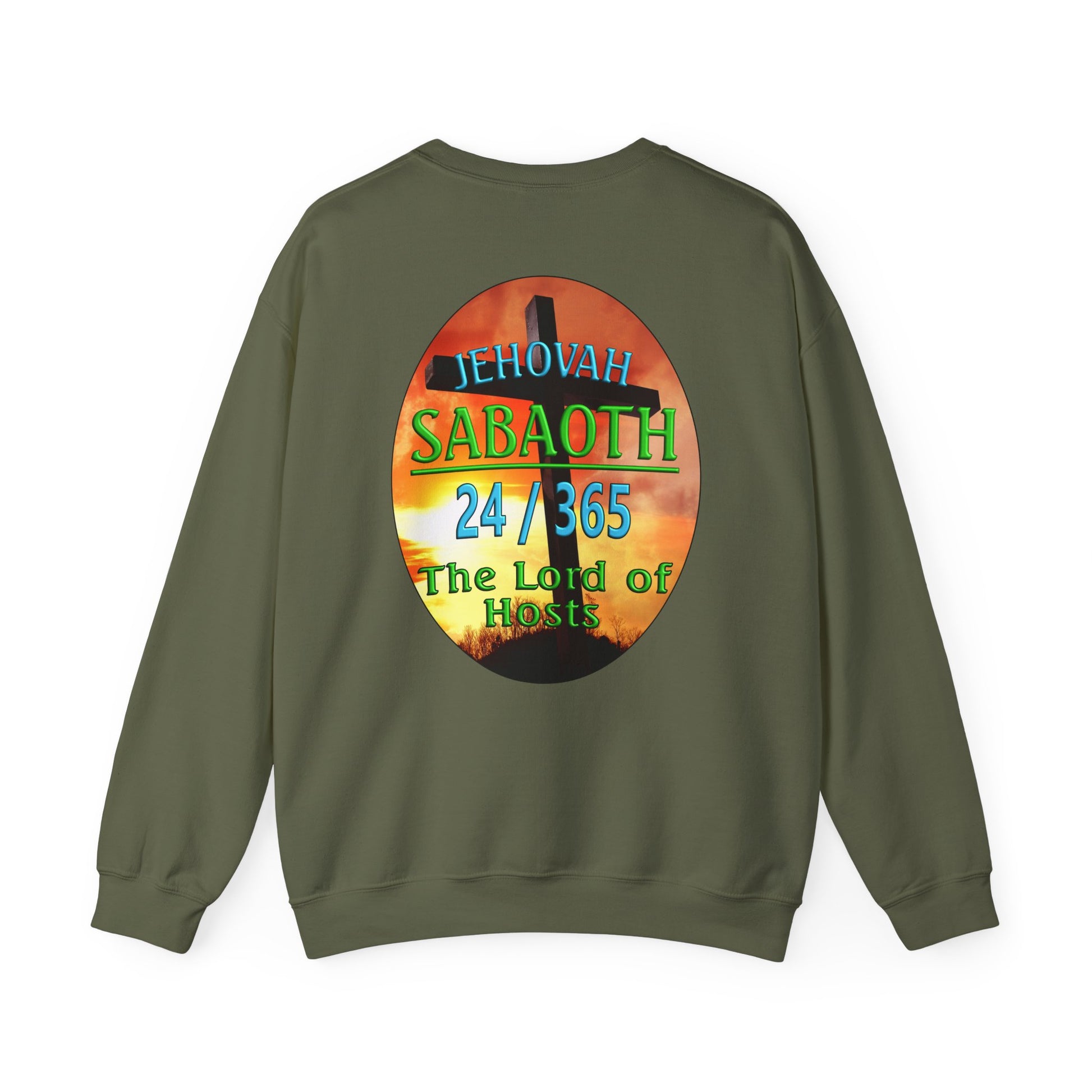This Sweat shirt reflects the combination of Jehovah with the word "Sabaoth". “Sabaoth” means host. When Sabaoth is added to the name Jehovah, it means the eternal God is Lord of Hosts or Lord of Armies. This generally applies to Him being Lord of the hosts of heaven but is also applicable to the armies of earth. There have been no army which cannot be turned and be use by Him to bring about His purpose on this earth.