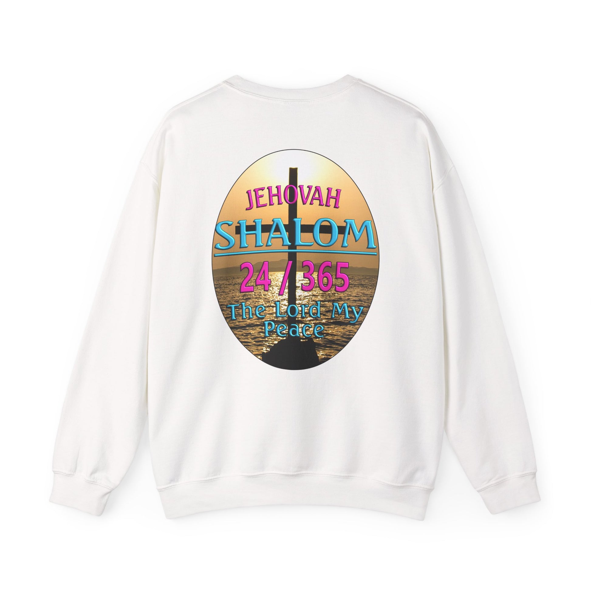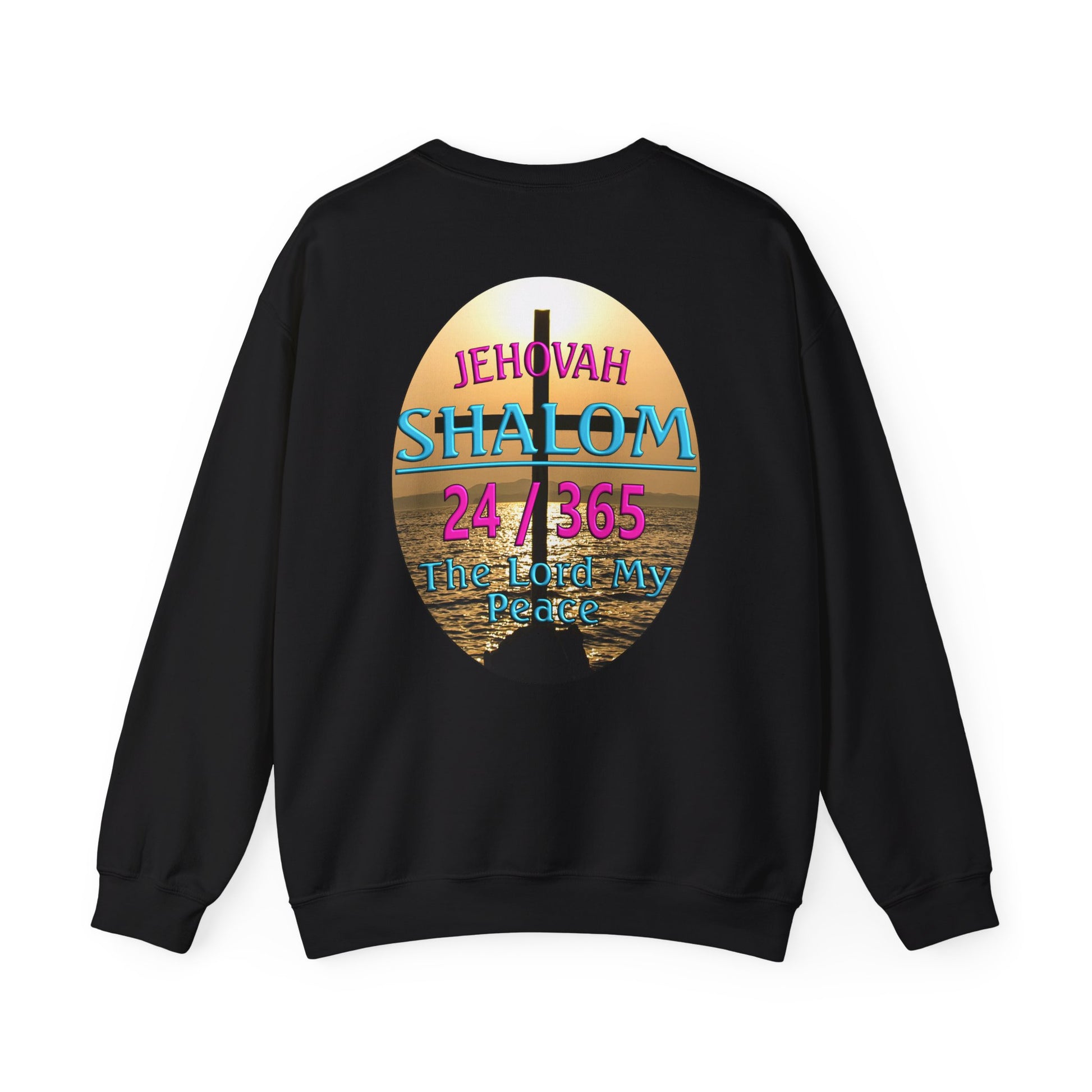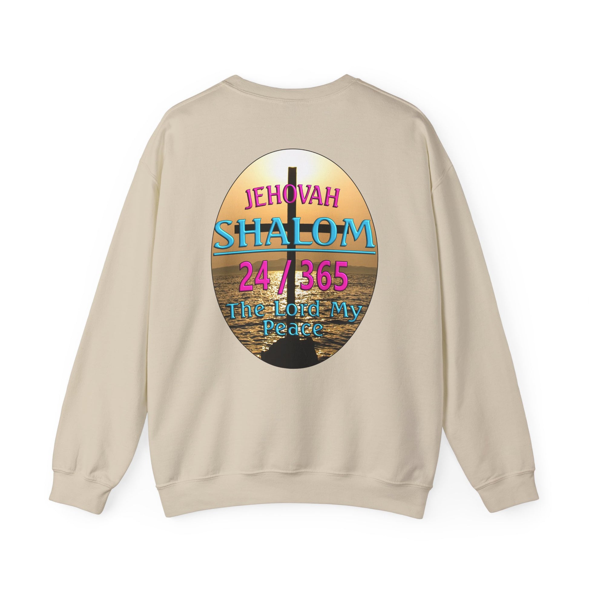 This Sweat shirt reflects the combination of Jehovah with the word "Shalom". “Shalom” means peace, When Shalom is added to a name like Jehovah, it means the eternal God is our peace. It also means that Jehovah is eternally our source of peace. He is gives peace 24-365. There is no point during the day or throughout the year when is He does not want to bestow His peace upon us. He offers and will give peace in every circumstance or situation.