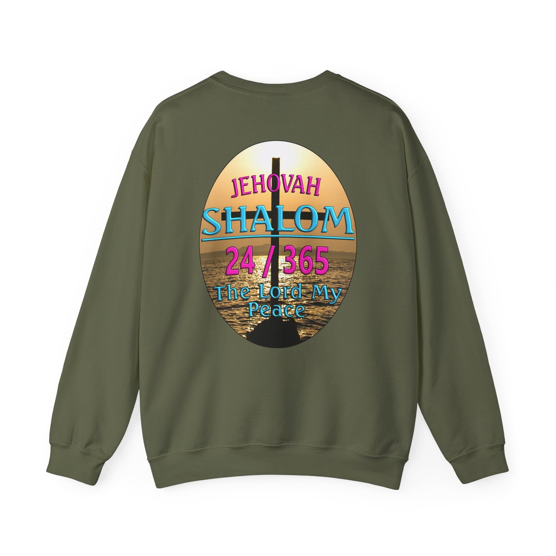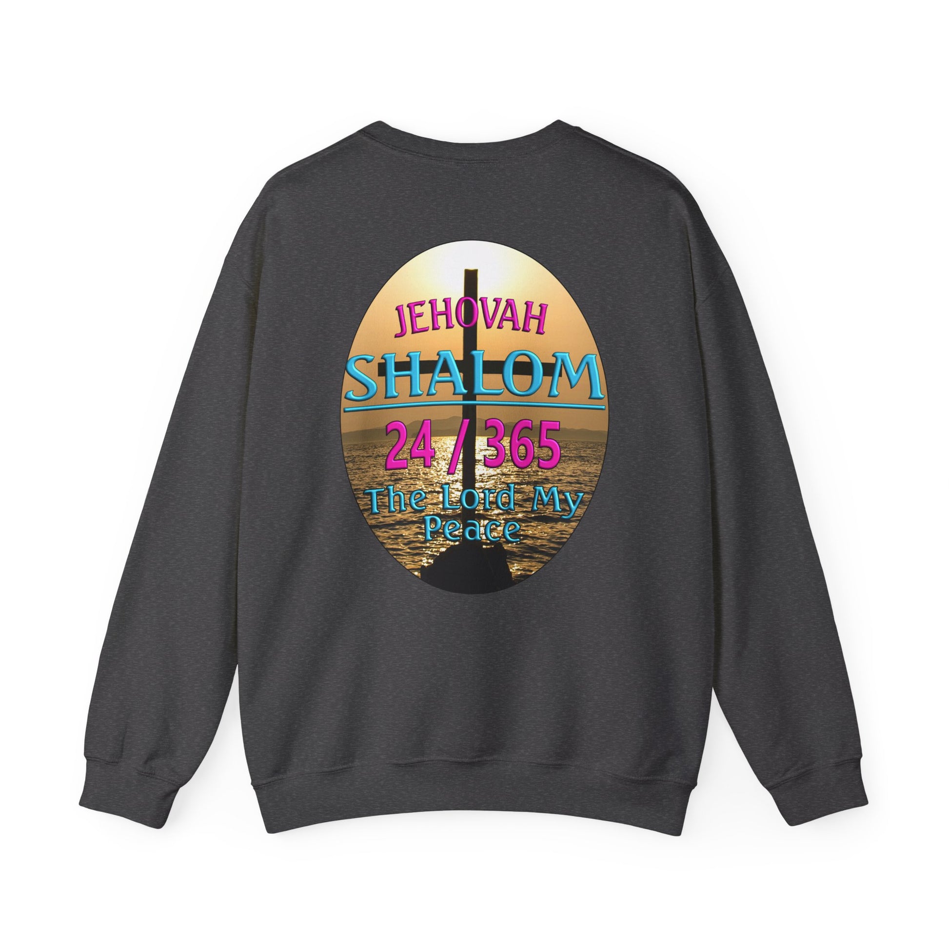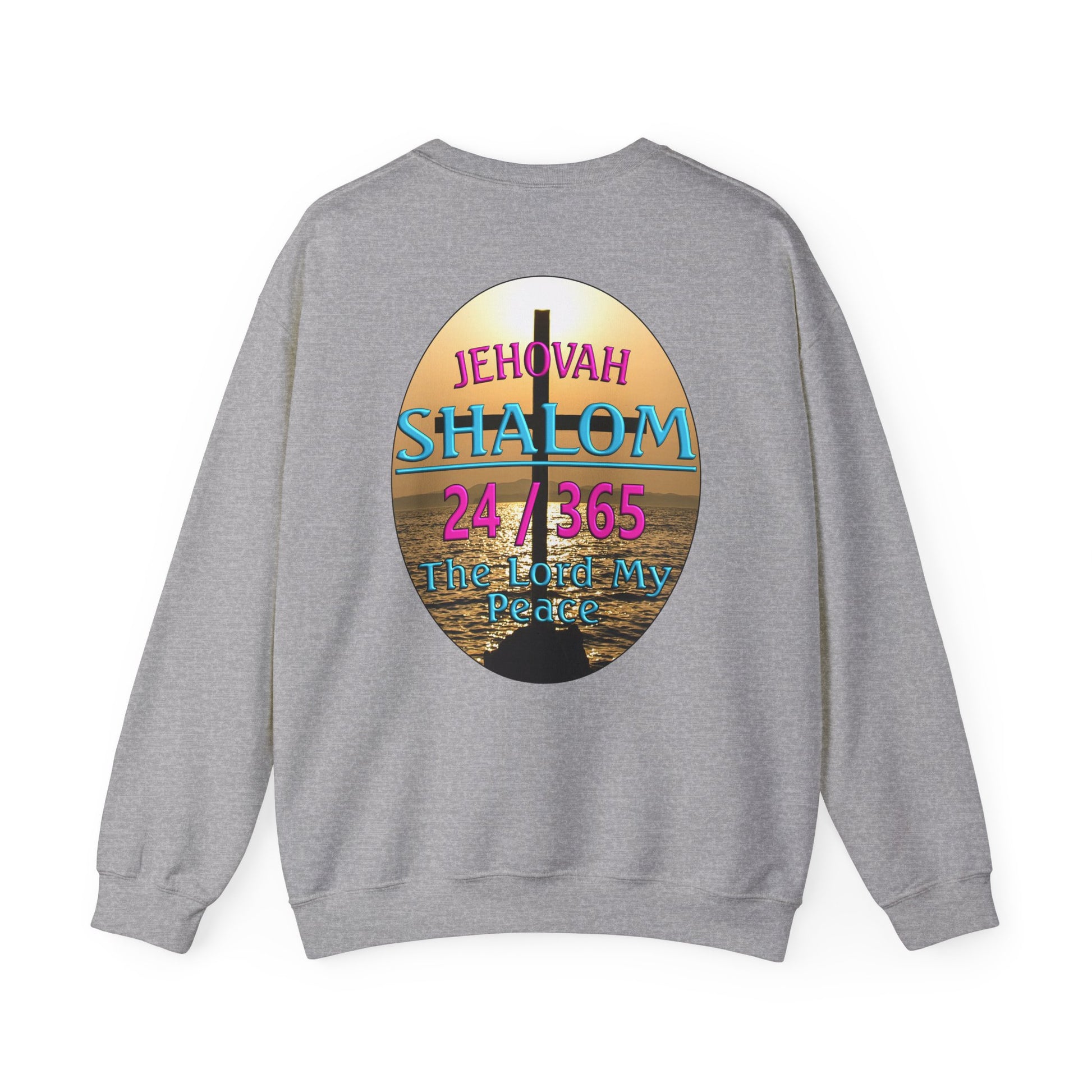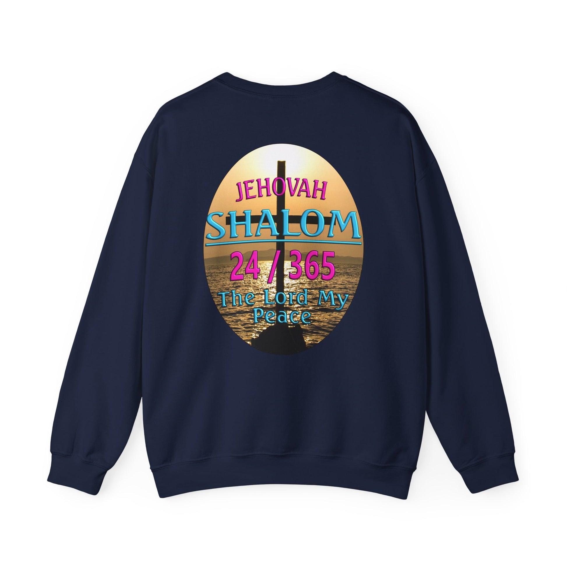 This Sweat shirt reflects the combination of Jehovah with the word "Shalom". “Shalom” means peace, When Shalom is added to a name like Jehovah, it means the eternal God is our peace. It also means that Jehovah is eternally our source of peace. He is gives peace 24-365. There is no point during the day or throughout the year when is He does not want to bestow His peace upon us. He offers and will give peace in every circumstance or situation.